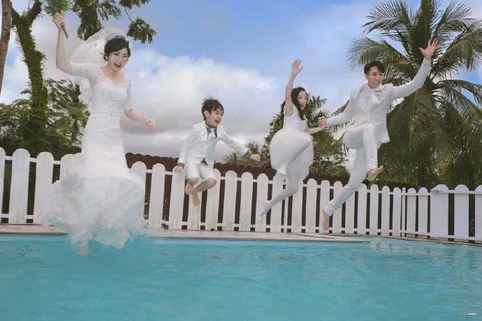 吴尊还带着老婆儿女一起来了一个泳池“跳水照”,简直被一家四口的幸福给闪到了。