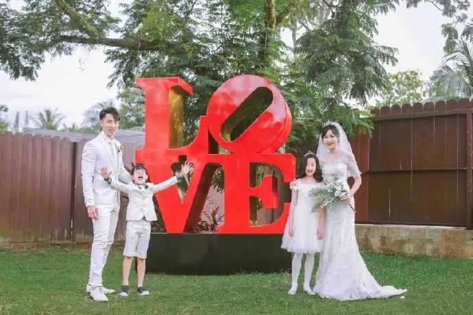 之后Neinei和Max也纷纷换上礼服和爸爸妈妈一同出镜,一家四口手牵手,画面温馨爆棚。