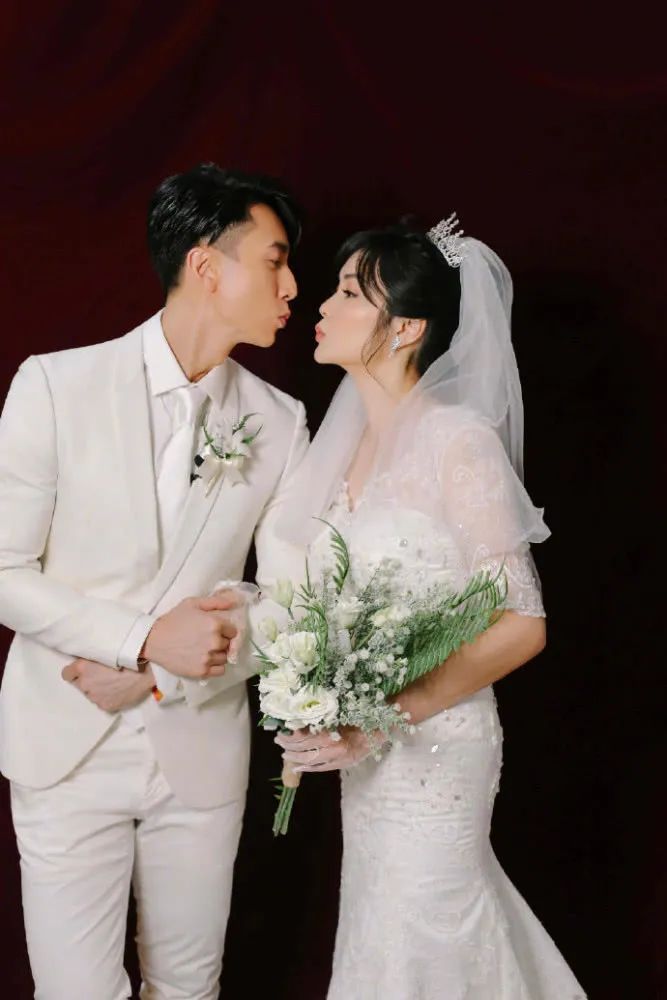 既然是婚纱大片,那西式婚纱当然不能少啦。镜头前吴尊一身白色西装超帅气,林丽吟挽起长发,换上了纯白色的鱼尾婚纱,凹凸有致的身材一览无余。夫妻俩全程甜蜜依偎,真是隔着屏幕都能嗅到狗粮味儿了。