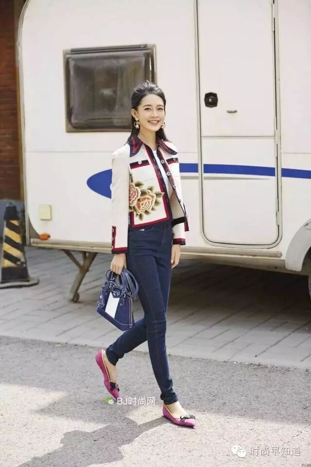 这款衣服,杨紫和姚晨都有穿过,只是李沁搭配了一款牛仔裤和尖头鞋更接地气