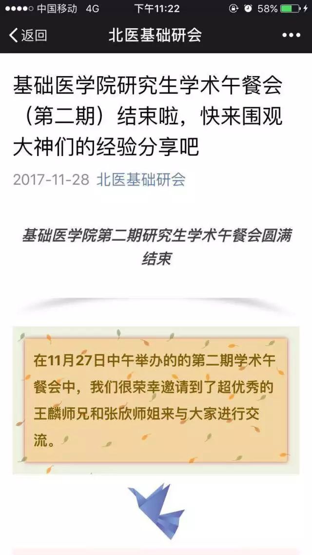 由于第一期活动的成功举办,第二期活动参与人数由第一期的30余人升至50余人。第二期午餐会,基础医学院邀请到了研究生国家奖学金获得者王麟和张欣同学。作为基础医学院优秀研究生的代表,他们分享了自己在科研、学习、生活中的许多宝贵经验。