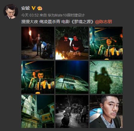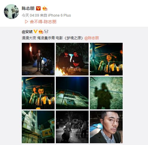 12月29日,安琥凌晨四点发表微博,晒出两人合照,并借用陈志朋的语气说道,漫漫大夜 俺凌晨杀青 电影《梦境之源》@陈志朋,宣布两人杀青,随后陈志朋也转发微博进行互动,并附上自己的歌曲《舍不得》,看来两位玩得很开心呀~~