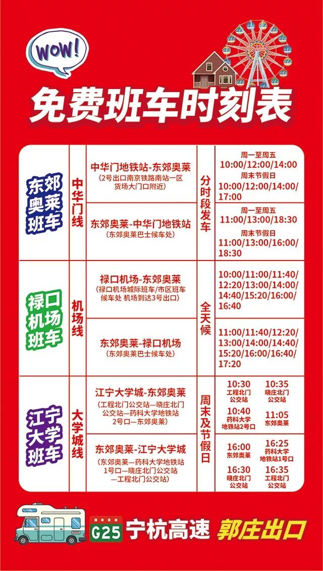 免费购物班车路线:中华门线、禄口机场线(全天候)