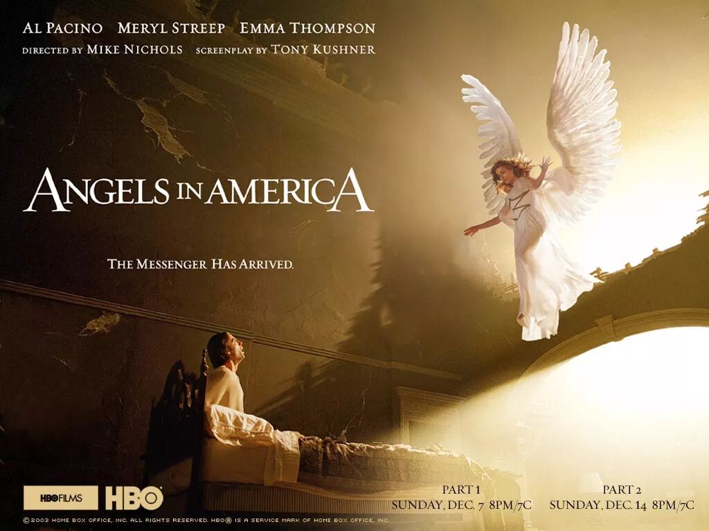 《天使在美国》是美国当代剧作家托尼·库什纳尔的魔幻现实主义作品,库什纳尔是出了名的话痨,这部《天使在美国》更是时长达到了506分钟。故事背景是上世纪80年代的美国,讲述了几位徘徊在生死边缘的纽约人在动荡社会中的挣扎以及对诸多国事议题的讨论。