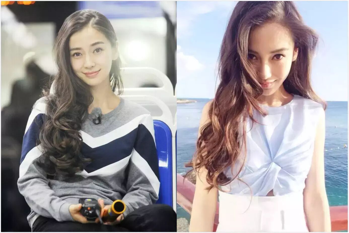 我们的baby和倪妮这对姐妹花,都是一头大长发搭配S型刘海。左边是倪妮,右边是baby—嘻嘻,献给脸盲的你。
