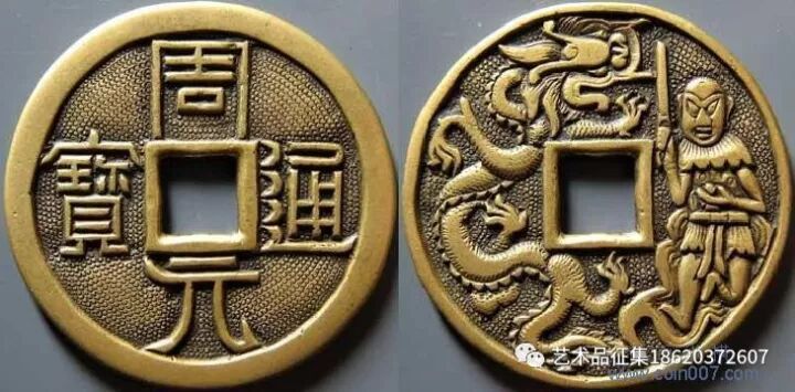 早期“周元通宝”背“胡人舞--成交价:RMB1,592,070---成交日期:2014-06-14