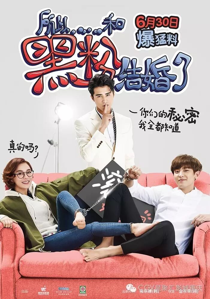 由喜剧者联盟影业、博纳影业、捷成中视精彩联合出品,由EXO成员朴灿烈(Park Chan Yeol)、袁姗姗、姜潮以及韩国“少女时代”成员徐玄主演的爱情喜剧电影《所以……和黑粉结婚了》(以下简称《黑粉》)近日公布“搅局”海报,发布会上朴灿烈(Park Chan Yeol)袁姗姗两人甜蜜互动关系升级,姜潮和徐玄分别以不同的方式强硬介入两人关系之中。