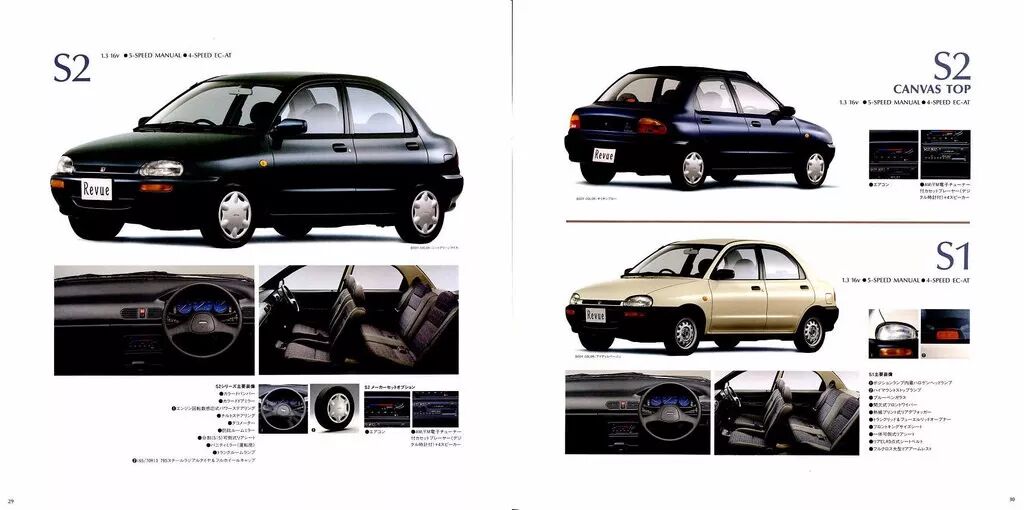 感谢那部叫《至尊三十六计之偷天换日》的港产片,里面出现的那台蓝色Revue至今依然让笔者印象深刻。Revue于1990年诞生。我们都知道,当时的马自达正在玩多渠道化销售策略,而Revue则被归类到其中的Autozam下。对于Autozam而言,Revue也有着相当的意义,因为在它之前,Autozam仅是负责销售铃木OEM车型(或是与铃木有着深度合作关系的车型)以及蓝旗亚产品的一个细分。