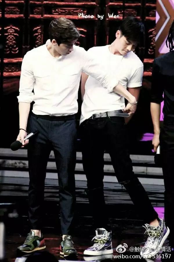 二人分别在自己的微博晒出二人的街拍。再看看李易峰和陈伟霆节目中的互动环节。
