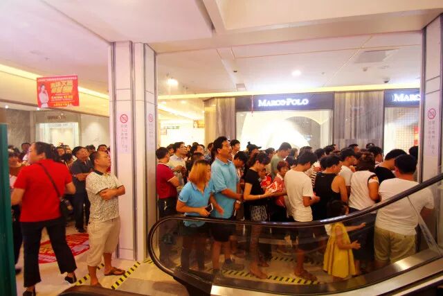 签到处,广大顾客朋友们已整齐排着队