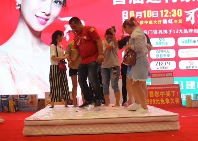 主持人不仅让姑娘们站在床垫上跳舞