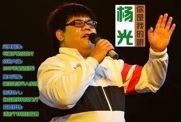 原名杨晓光,快乐的盲人,在星光大道的舞台上,他用音乐唱出人的心灵、情感的美好、生活的恩赐。其中尤以《当你老了》最具代表性,唱出了他对母亲的感激之情。
