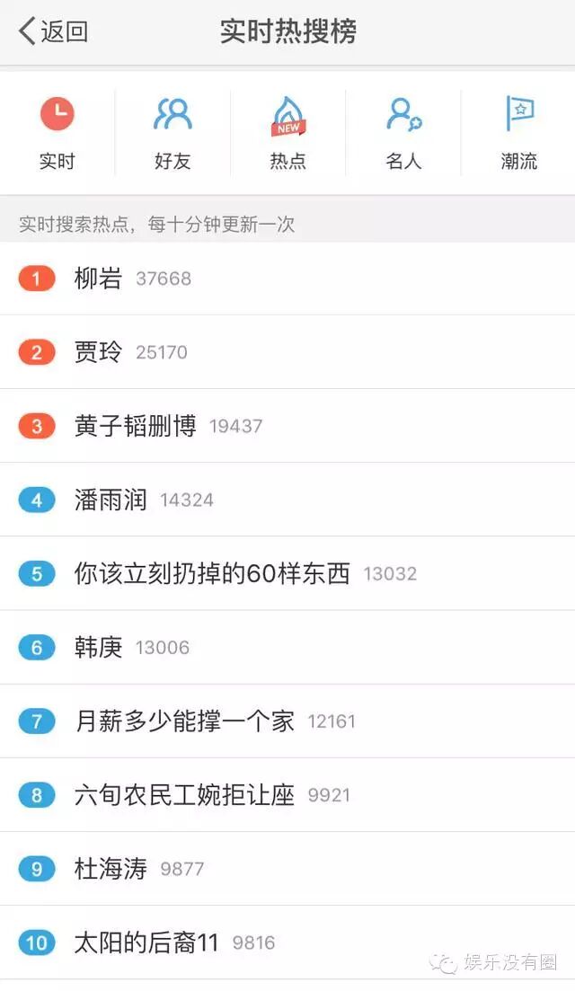 但是,昨晚深夜的微博里,因为包贝尔婚礼上被众人险些扔下水的伴娘柳岩上了热搜头条而炸开了锅。通过这个热搜榜能够看到除了柳岩在排行第一之外,还有同行参加婚礼的贾玲,韩庚,和杜海涛纷纷上榜!