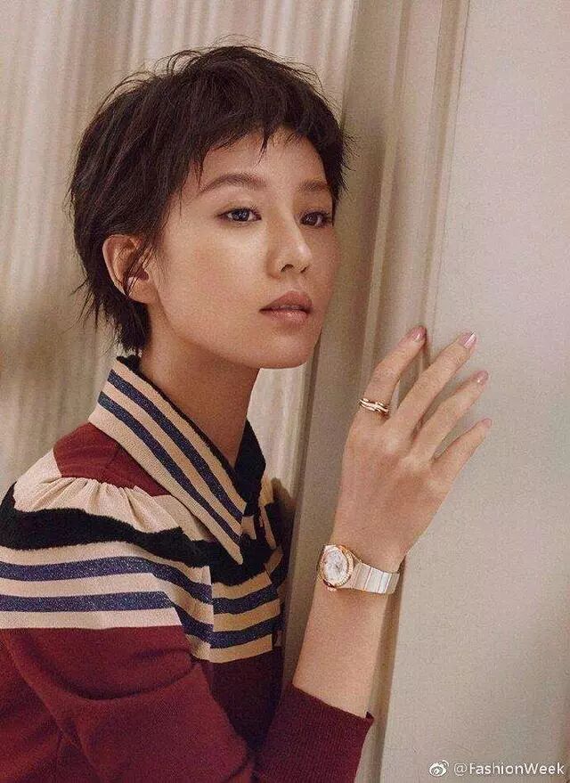 刘诗诗之前也尝试过短发发型但是都是齐肩左右,这次直接一次性短到了耳根之上。虽说是短发,但是也用心打理过,凌乱但是有致,发根处有轻轻的蓬起,发丝与发丝之前的交叉形成美丽的弧度,非常的优雅。