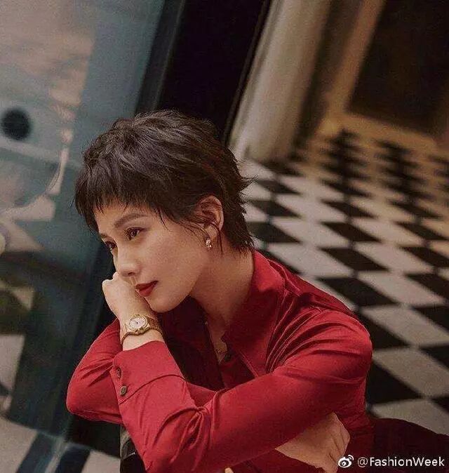 从整体的造型上来看,短发改变了她整个人的气场,从一开始的温柔楚楚可怜,变得干练和伶俐,搭配酒红的衬衫,变身职场中的最强OL,而且红色给人强势感,搭配强势短发造型,霸气外露,十分冷酷帅气。