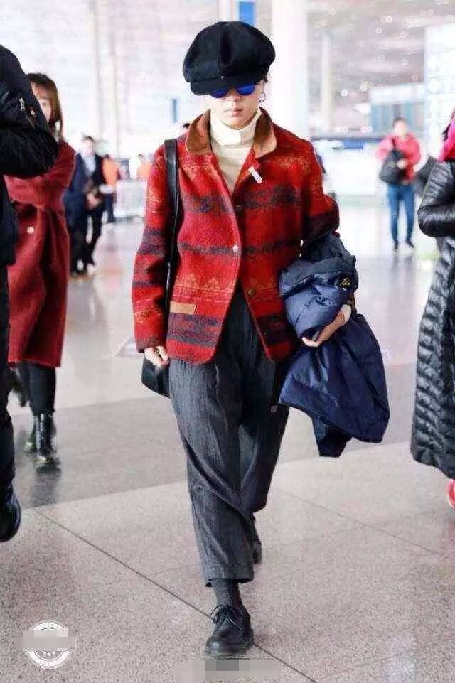 周笔畅的衣品真的是让人堪忧呐!上身穿的红色格子毛呢外套不是老奶奶常穿的款式吗?最令人堪忧的是她搭配的裤子,简直不能再老气了!身为一个艺人,衣品也不能这么差劲吧!