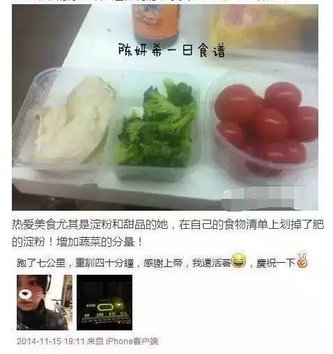 那会瘦的健康的陈妍希,一日三餐都是这个画风