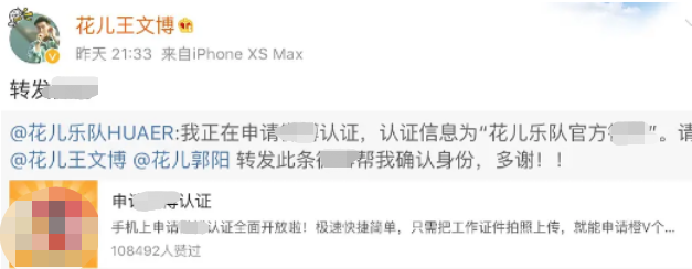 而且花儿乐队又申请了一个新官微,还邀请另两位成员帮忙认证。