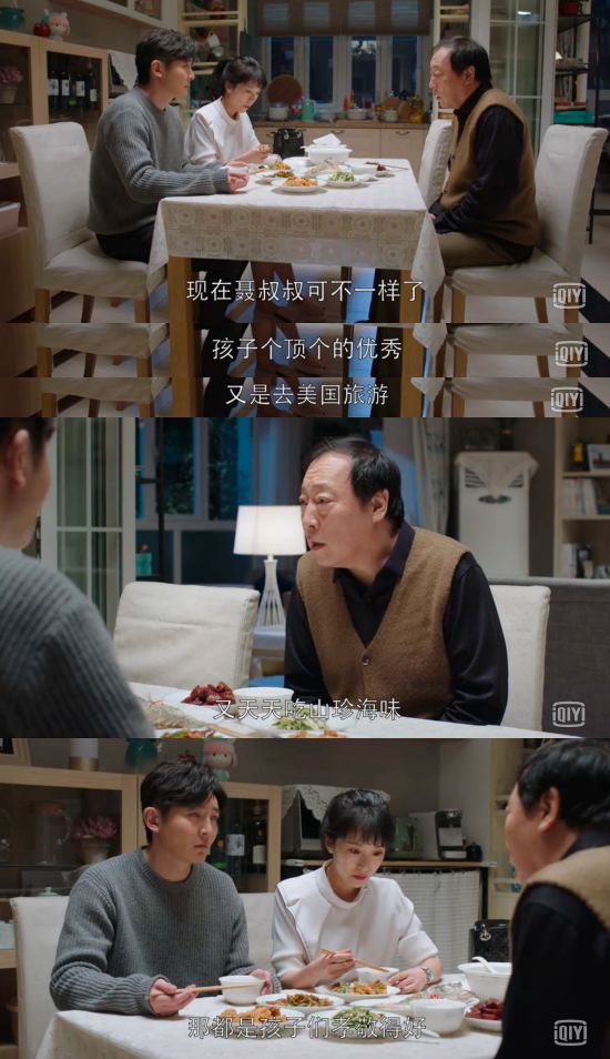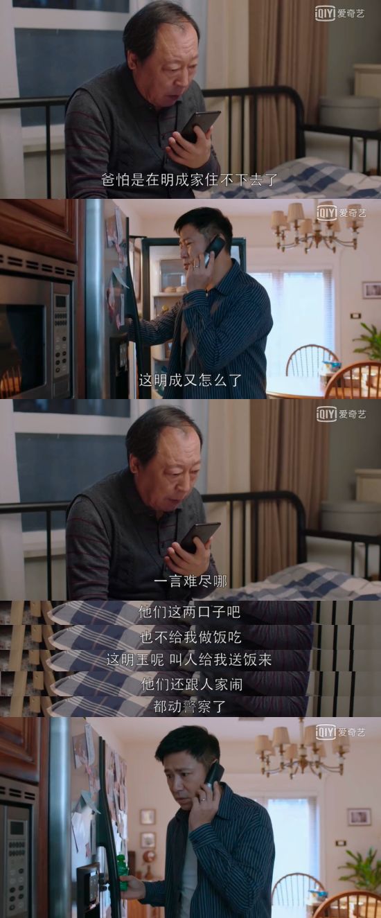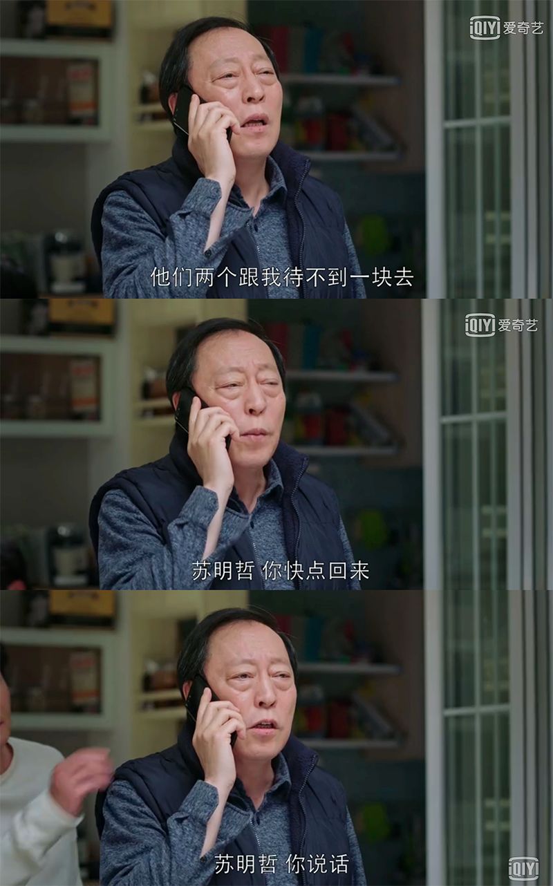 后来,因为苏明哲工作的问题,去美国的幻想破灭了,“迫不得已”暂住在二儿子苏明成家,他又开始了第二招神技——“闹”: