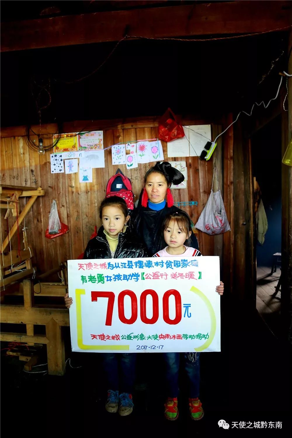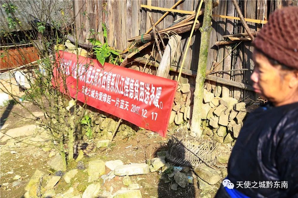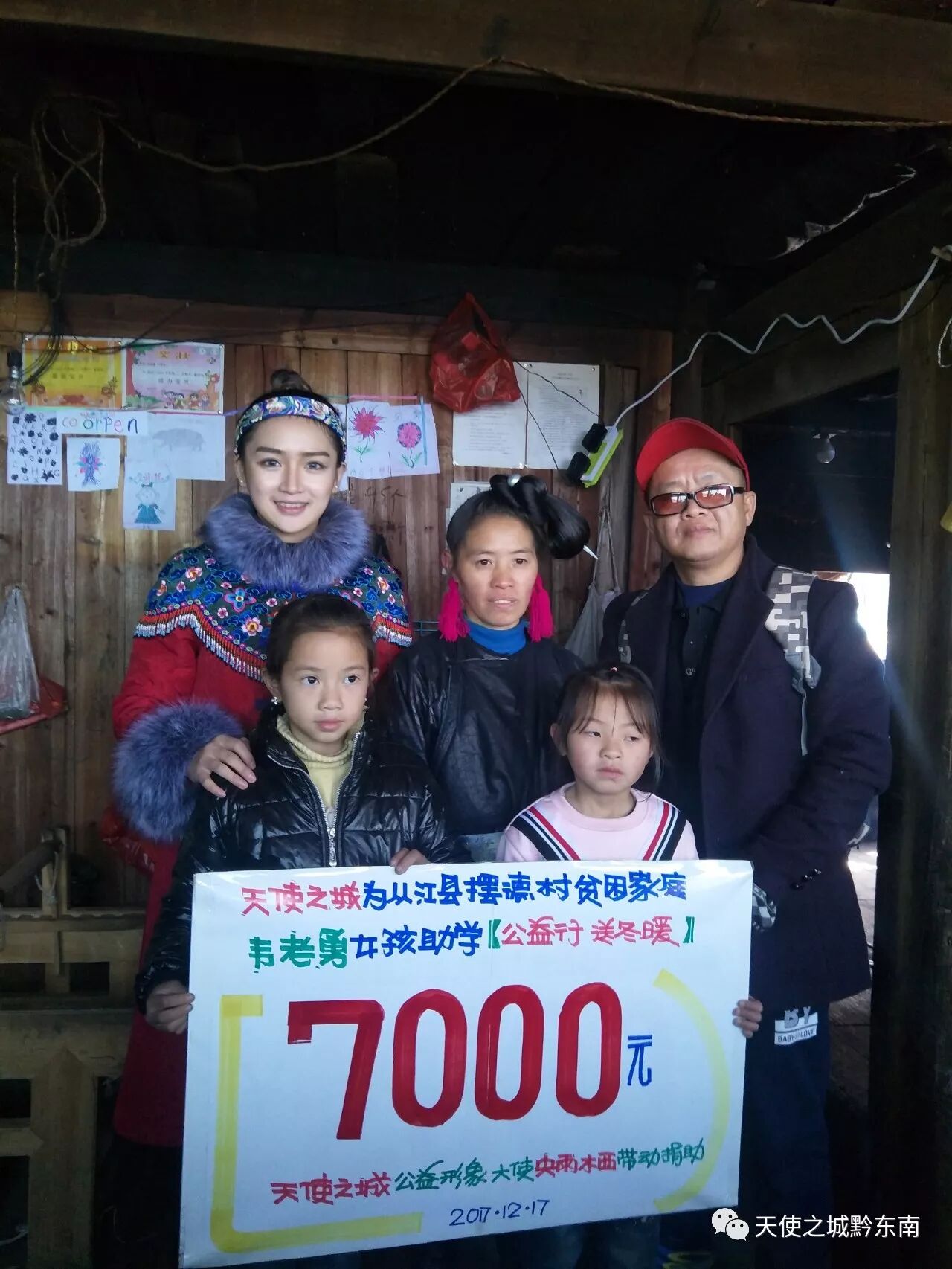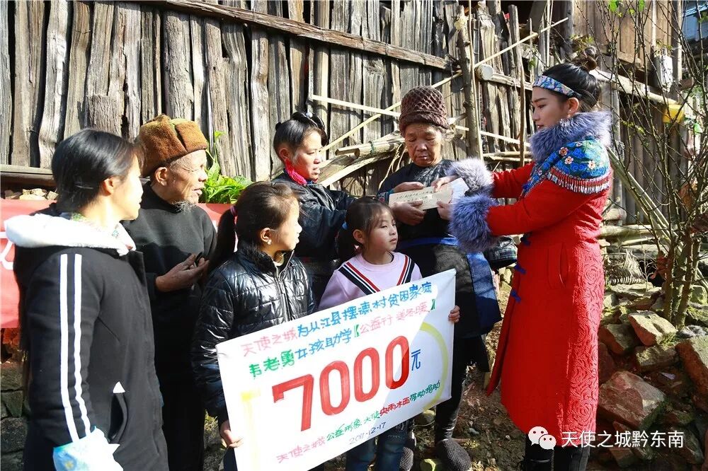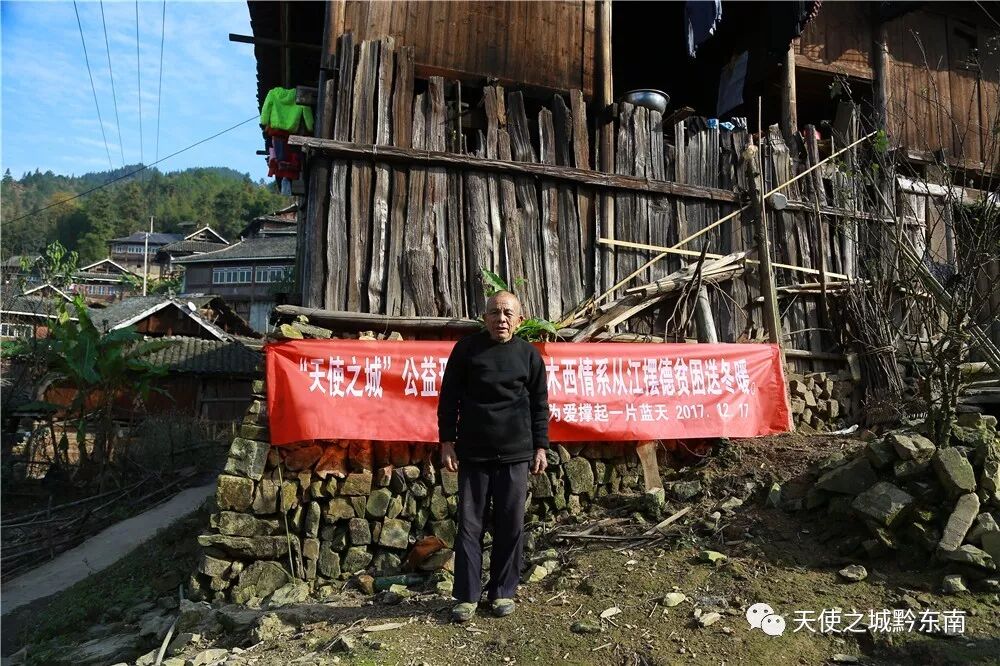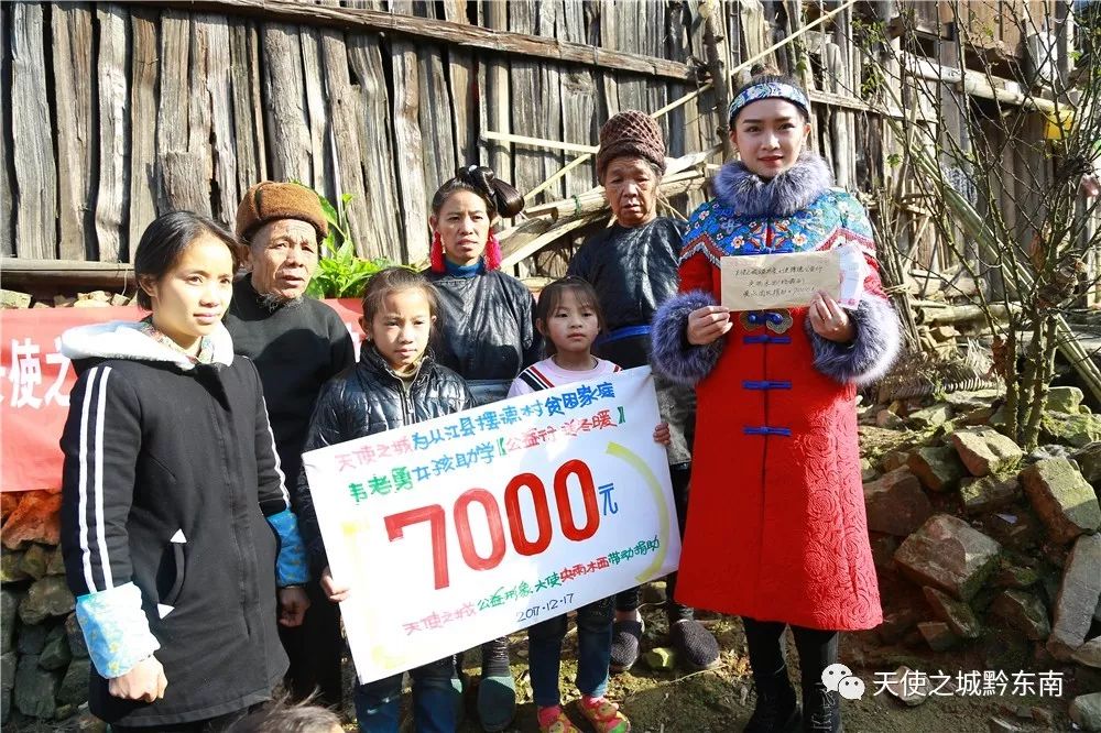 2017年12月17日“天使之城”公益形象大使央雨木西和创始人潘礼贵爱心团队,将爱心人士的捐款亲自送到从江县东朗乡摆德村韦老勇的家里。