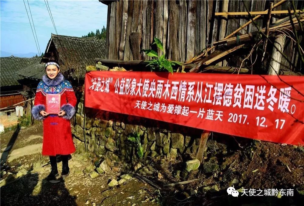 “从黔东南州榕江县到从江县东朗乡摆德村,我们整整开了3个小时曲折蜿蜒的山路,当车开到摆德村时,此时此刻有一个画面,让我的心情久久不能平静,一位光着脚板的小女孩得知我们来到的消息,从家中立马跑到我的面前拉着我的手叫着姐姐,那一刻,温暖了我的心”,爱心歌手央雨木西这样说道。