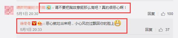除了嘲讽徐冬冬用替身外,还有骂徐冬冬故意挺胸的,这个时候徐冬冬的回复依旧很犀利,我情不自禁都要给她点赞!