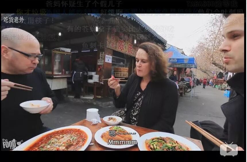 在青羊区吃个豌豆杂酱面吃得高潮迭起。在三圣乡,一大桌农家菜一个人吃完,吃冒鸭子时,5秒一次 “ 好吃 ” ,3秒竖一次大拇指。甚至一人来到驷马桥农贸市场,研究 “ 辣椒与花椒到底是什么黑科技 ” ,有一期节目,甚至让自己的父母专程从加拿大坐飞机到成都,只为尝一尝某家苍蝇馆子的豆瓣鱼,因为 —— “ 噢,上帝,这里有你无法想象的味道 ” 。