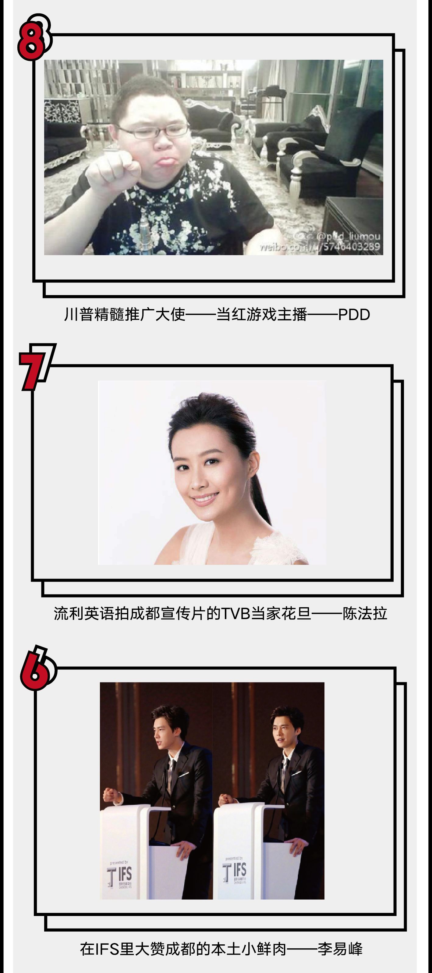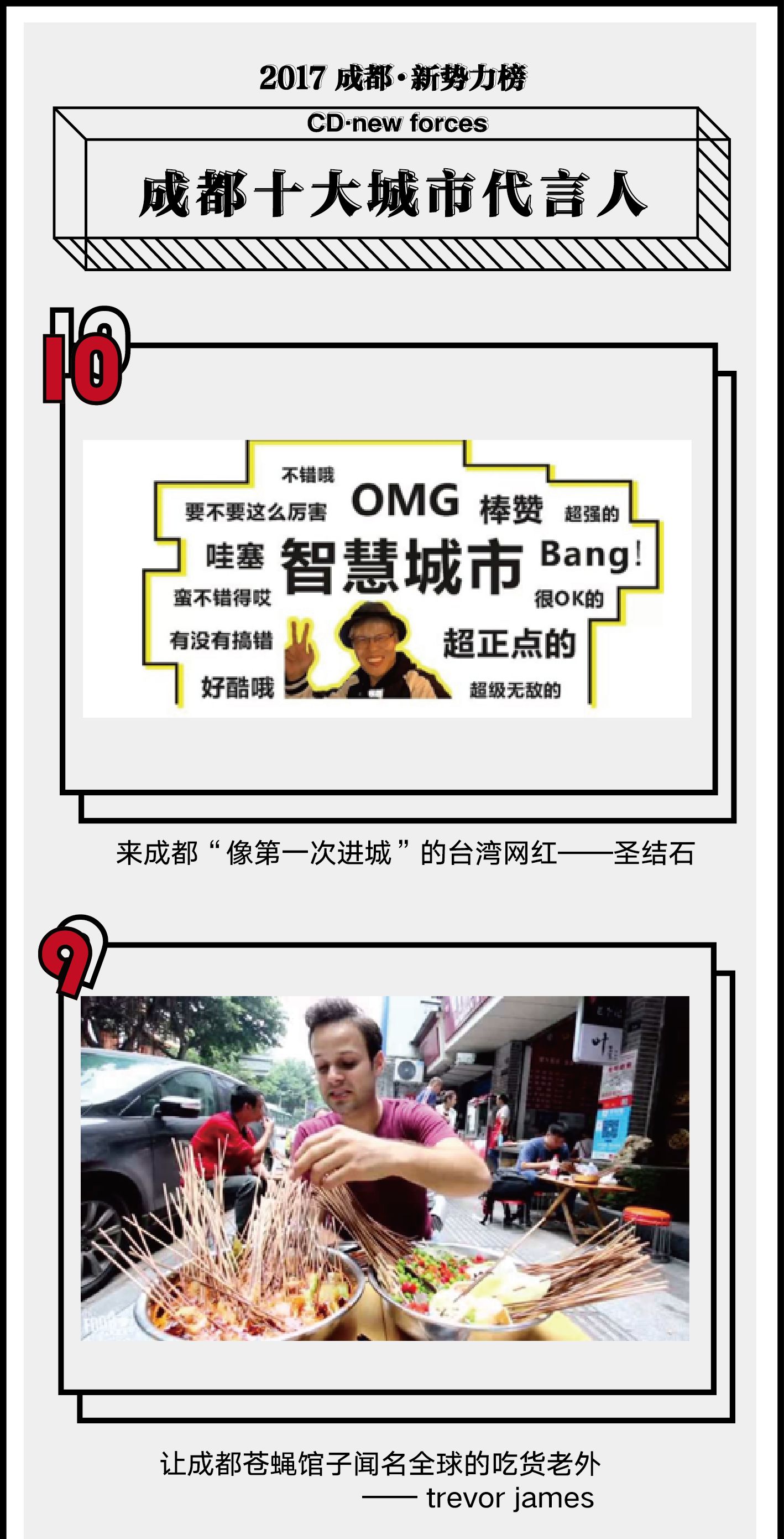 说到成都代言人,您可能会想到李宇春、张靓颖、张杰、李伯清等 “ 传统本土明星 ” ,而这一次,我们要总结的,是在2017这个神奇的年份,对成都知名度与影响力贡献巨大的 “ 新代言人 ”