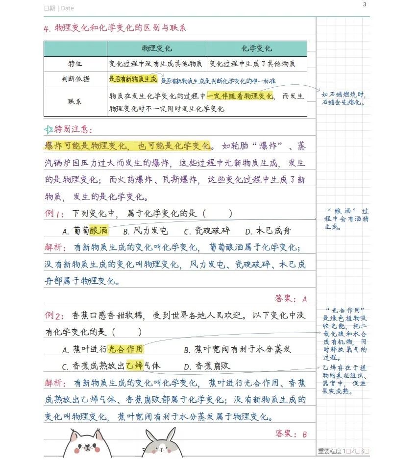 副栏记录学习中所学所思,解读重难点和常考点,轻松攻克重难点,突破提分瓶颈。重点难点另色标注,重心分明学习更高效。