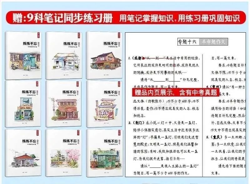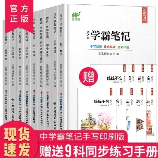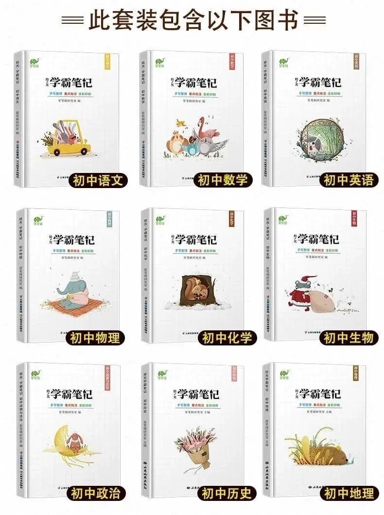 同时,这套书也有初中生版的,分别包含语文、数学、英语、政治、历史、地理、生物、化学、物理9大学科,同时附赠各科对应练习册。