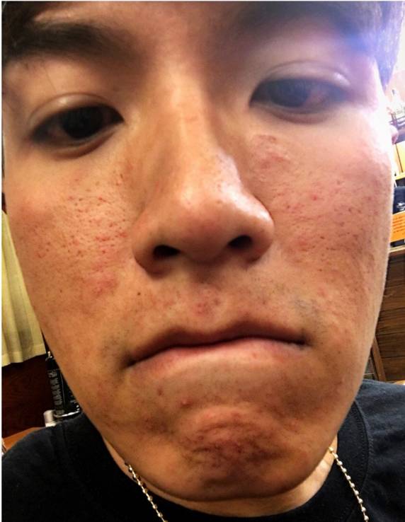 自己在微博晒的图,更加惨不忍睹。不过他也解释了原因:过敏。