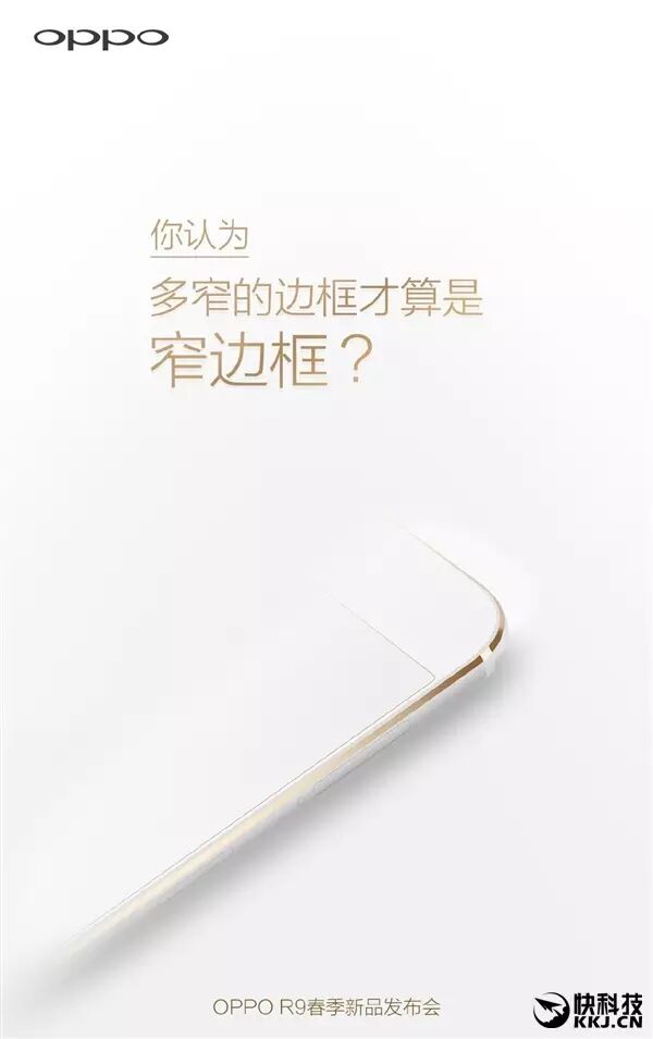 现在,OPPO又在微博上对该机做出了预告,并用上了“你认为多窄的边框才算是窄边框?”这句话。显然,R9要配备超窄边框了。