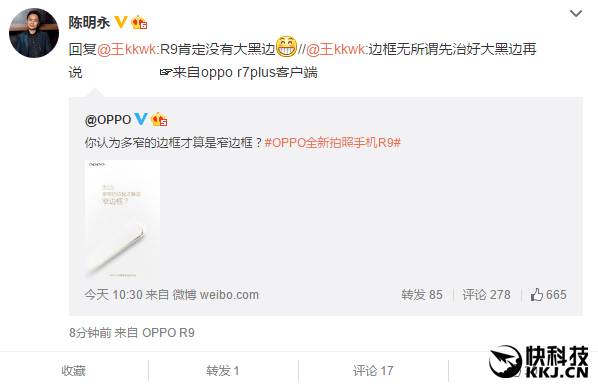 同时,OPPO CEO陈明永还在微博上表示,R9肯定没有大黑边。