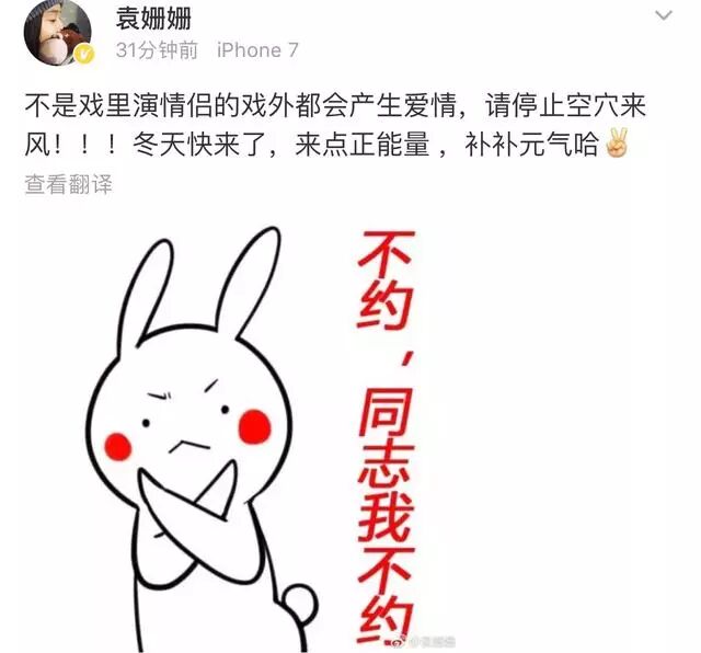 袁姗姗自然是又出来澄清,表示只是演个戏而已你们怎么这么当真!感觉她澄清得很忙的样子。