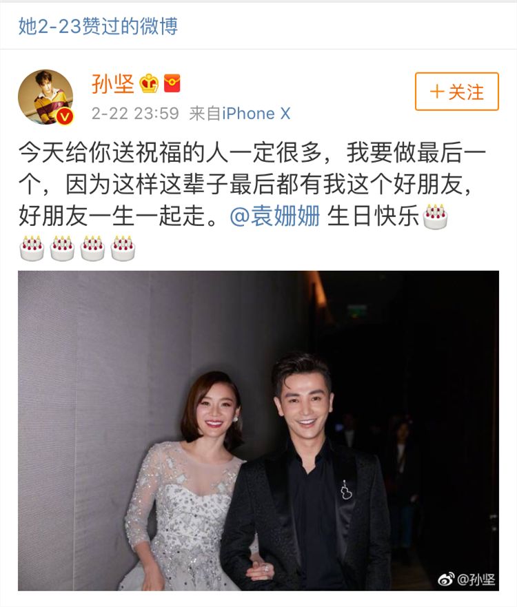 前几天,是袁姗姗的生日,娱乐圈许多明星都为她送上了祝福。