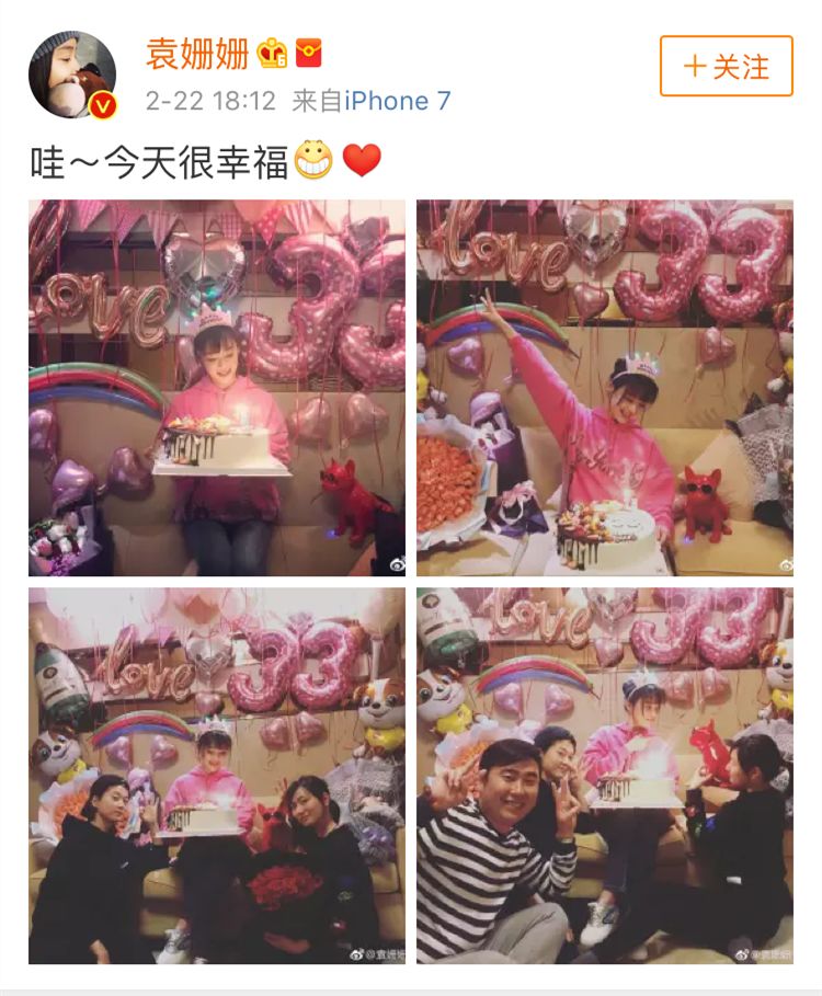 袁姗姗本人也发了生日派对的照片,看上去还蛮低调的,没有邀请什么明星朋友来。