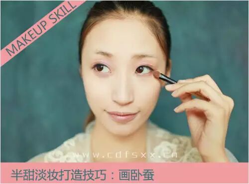 化妆技巧4:从眼头开始刷出卧蚕,在尾端来回刷。