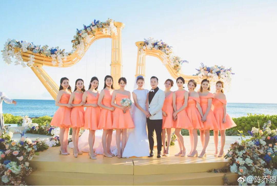那场在夏威夷海岛举办的豪华婚礼,选了个天气极好的日子,想必是吸取了大S不堪回首妖风婚礼的教训,陈荣炼更是一口气包了200名亲友的所有费用,充分展示豪门钞能力。