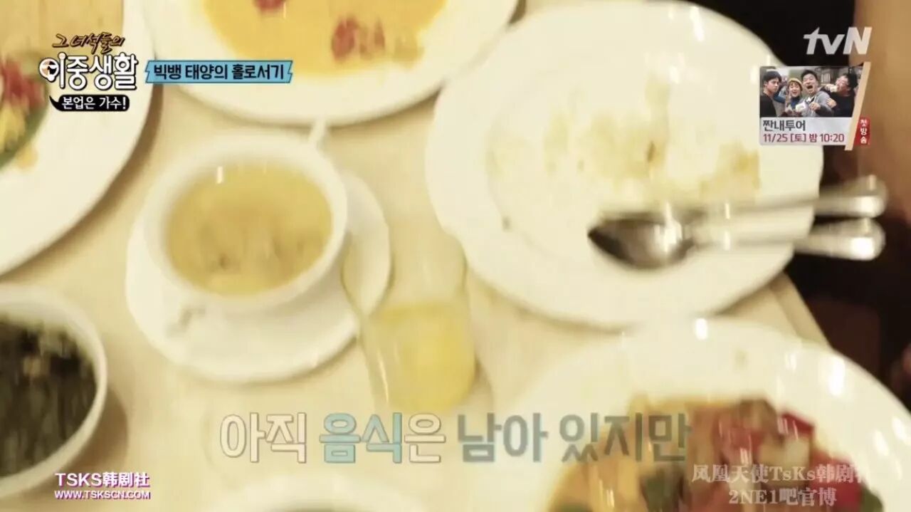 到达了目的地之后,经纪人又点了一桌子的美食作为晚餐,有肉有汤有甜点。而太阳只能捧着白开水,看着经纪人将整整一桌子的食物吃完。原来,歌手演出的准备期间是如此辛苦的度过的。