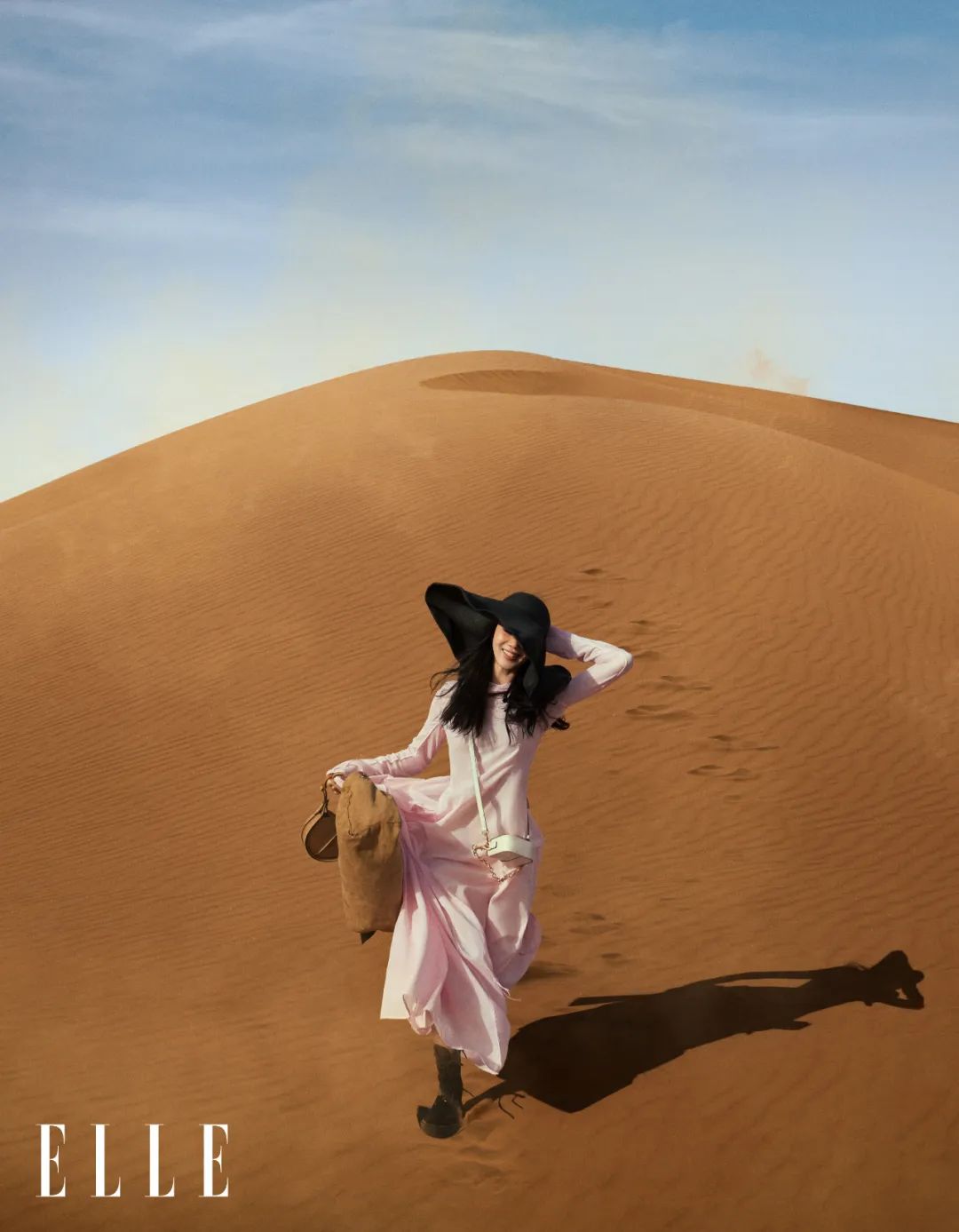 这种回归也是精神上的。去年几乎一半的时间,她都在进行《一念关山》的拍摄。大漠并非这部戏的主场景,但是,当她在荒凉冶艳的大漠上,手中有剑,心中有马,朱红衣袂与发中丝带翻飞,却瞬间给整个故事定了调。