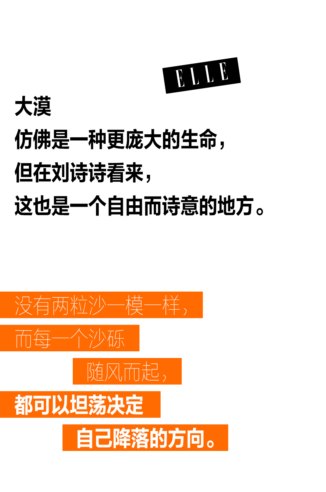 再次回来,她卸下了古装,也卸下了任如意肩头的天下纷扰,欣然接受了让“刘诗诗”的内外都沉浸到烈风与沙砾中去。她显出了一种更加真实、粗颗粒的自我。她仿佛属于这里,沙漠外化了她身上始终存在的果决、坚韧、自由。