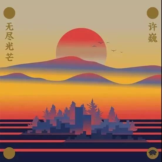 新专辑的封面,一轮红日悬挂在山上,金色的光芒铺洒在城镇的房屋与树木之上,色调温暖而明媚。