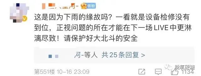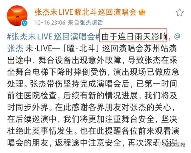 演唱会官方也出来进行了说明,说出现意外的原因是苏州最近连日下雨,导致一些露天设备出现故障。