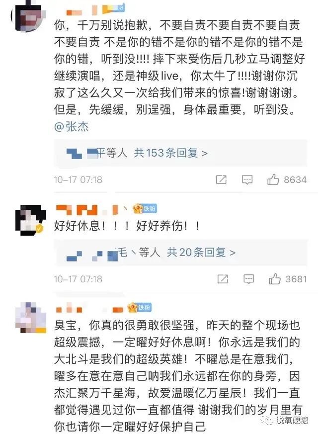 他的粉丝们都挺担心他的,也有人质疑舞台事故体现了主办方不专业的问题。