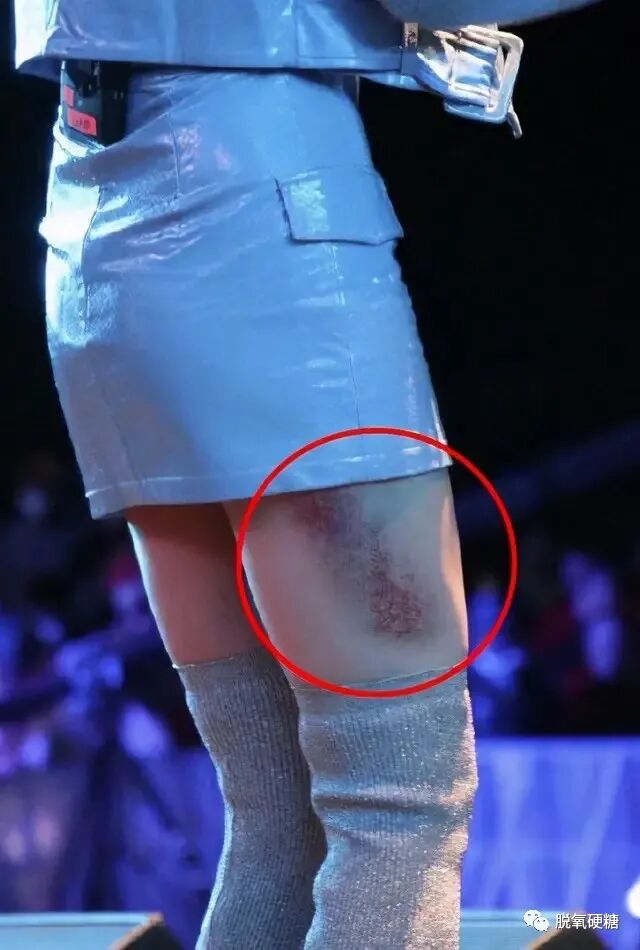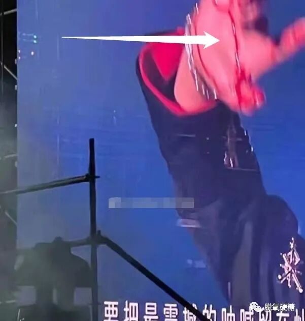 手部还有胳膊都受伤了,但还是继续坚持完成演唱。