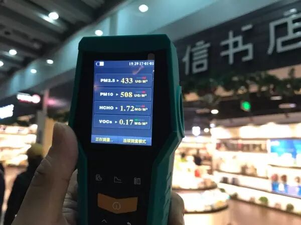 我这次拿机场和高铁举了例子,可是也真不能怪他们,这事让人很无奈,建造高铁和机场的年头,包括我们自己在内,又有几个人真正的了解雾霾呢?前一段就有网友专门去检测了几家大型商场,结果大家自己去看吧,确实没办法要求每一处的公共场所都去加装新风过滤系统。所以千万不要觉得进屋了,就没霾了。