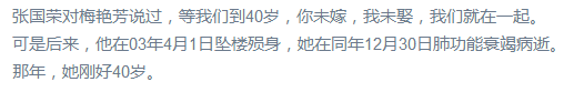但是这段感情真的被大家想多了,当时梅艳芳生日,去上节目的时候很多朋友送来VCR祝福,哥哥在里边的原话是: