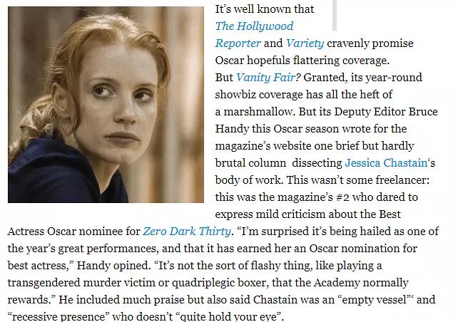 最让人不齿的,是第85届奥斯卡前,对大热影片《刺杀本拉登》(杰西卡·查斯坦主演)的污蔑诽谤。