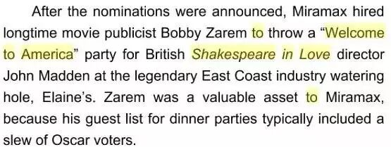 首先,不顾规定,同时邀请《莎翁情史》导演和三名学院成员(有投票资格)参加派对。