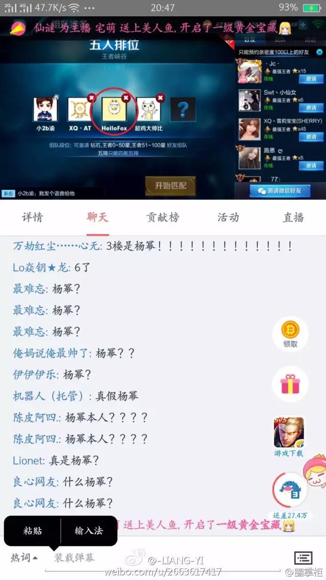 一名王者荣耀主播在直播时,不小心说出自己的3楼队友是杨幂↓↓↓